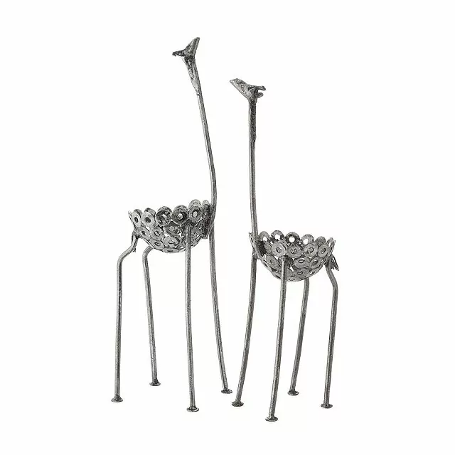 The Recycled Metal Giraffe Planter is a true masterpiece for plant enthusiasts and lovers of unique, eco-friendly decor. Handcrafted from salvaged metal, each piece carries a distinctive charm and story, meticulously welded by Kenyan artisan Tom Ateto and his team. This planter does more than hold plants it brings a touch of personality to any space. Perfect for small succulents, herbs, or as an eye-catching entryway accessory, this giraffe planter combines functionality with artistry, making it a standout decor piece for any home or garden.