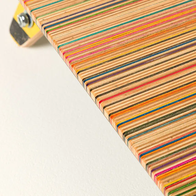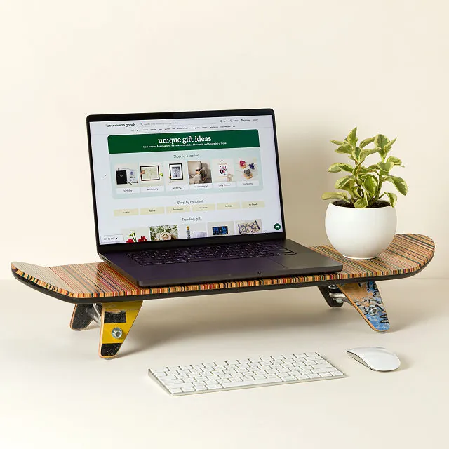 Old decks, new tricks! The Recycled Skateboard Display Stand turns worn skateboard decks into a functional, eye-catching piece of décor. Handmade by artisan Jason Podlaski in Pennsylvania, each stand carries its own unique character, scuffs, and colors from its past life on the streets. Perfect for monitor risers, display bases, or low shelves, this stand blends skate culture with stylish home functionality.