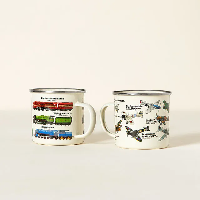 The Retro Planes or Trains Mug is a beautifully illustrated enamel vessel designed for collectors and enthusiasts alike. Choose between two distinct themes: one featuring iconic locomotives like the 1930s Norwegian Dovregubben and the 1830s German Adler, or the other showcasing legendary warplanes such as the WWII-era North American P51-Mustang and Great Britain’s Supermarine Spitfire. Each mug serves as a love letter to transportation history, blending nostalgia with practicality.