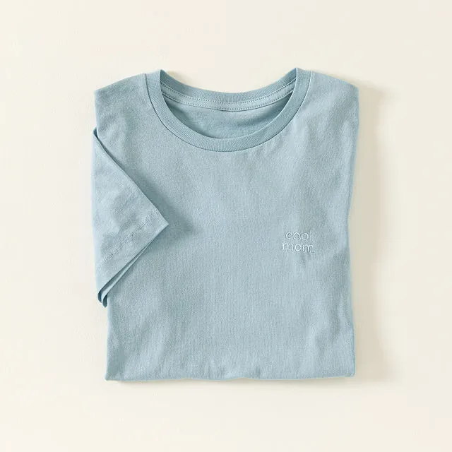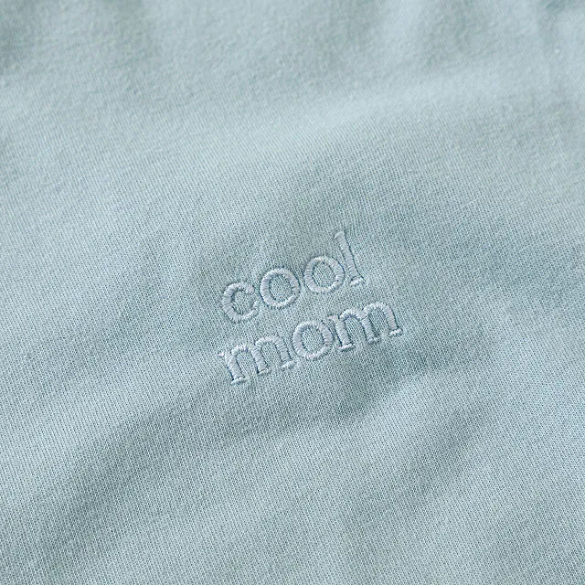 - Color: Light blue, with an embroidered “Cool Mom” design in matching thread for a minimalist look.