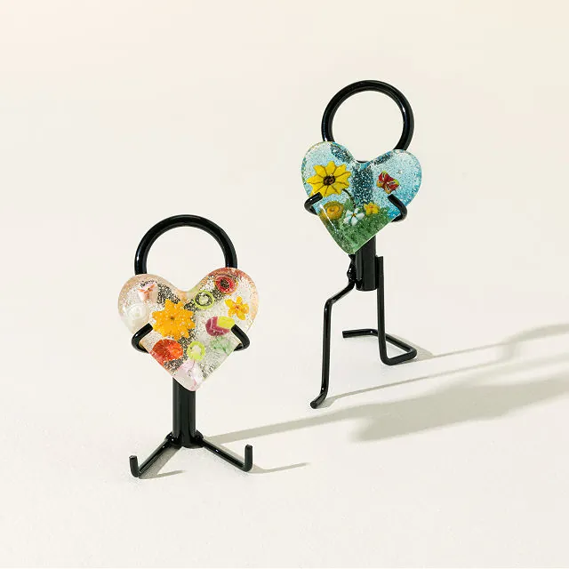 Each sculpture is handmade, ensuring that no two pieces are exactly alike. The combination of steel and handblown glass creates a unique and personal expression of love.