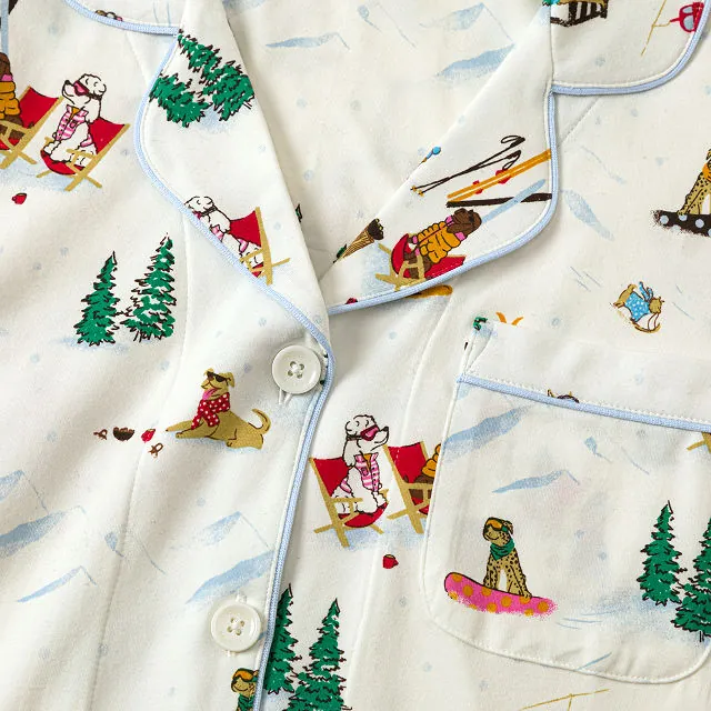 Ideal for bedtime or a relaxed day at home, pair these pajamas with your favorite slippers or cozy socks. The playful skiing dog print adds a festive, cheerful touch that makes lounging more fun.