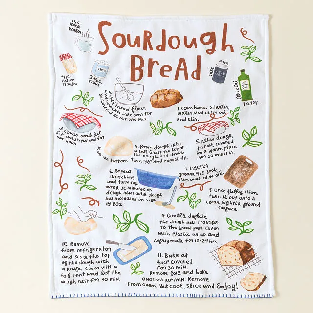 Bring both charm and utility to your baking with the Sourdough Recipe Dish Towel.