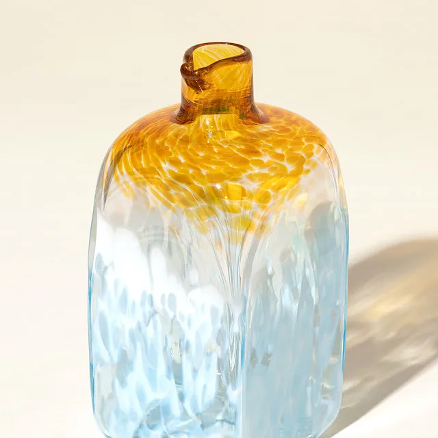 Each Sun & Sky Handblown Whiskey Jug is individually crafted, fusing traditional glassblowing methods with a contemporary aesthetic. The smooth curves and radiant gradient—amber fading into sky blue—make it not only a functional decanter but a centerpiece worthy of admiration. Whether filled with fine whiskey or simply displayed, it brings a touch of elegance to any space.