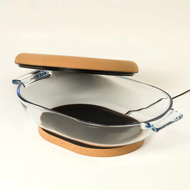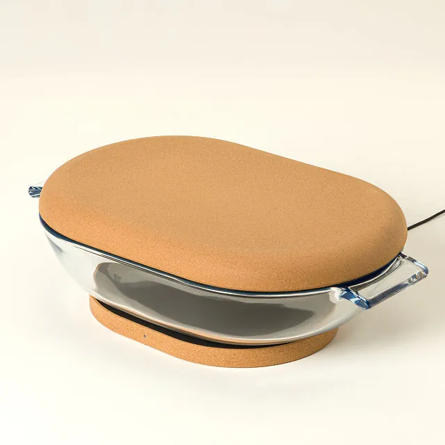 Care: Dishwasher-safe glass bowl and polypropylene lid liner; wipe silicone and cork with a moist cloth; glass bowl oven safe but avoid sudden temperature changes and abrasive cleaners