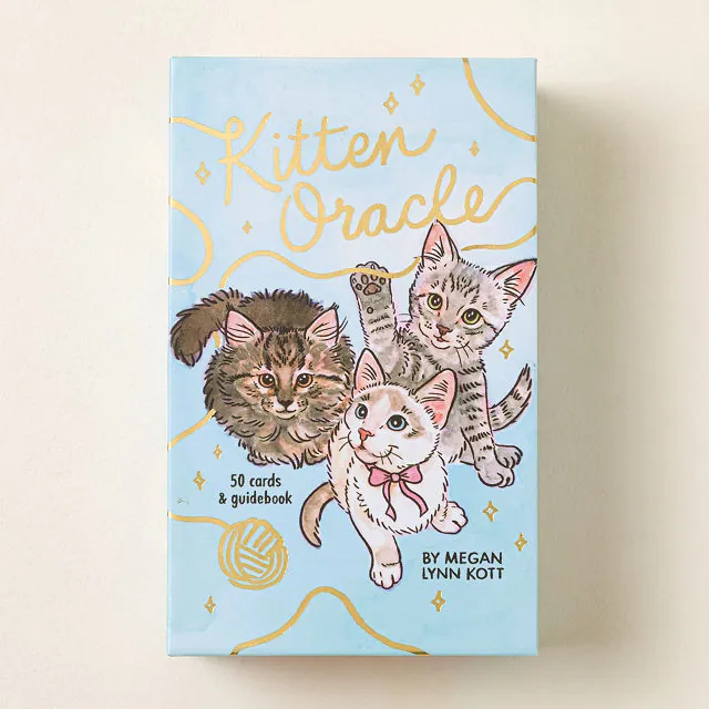 Each set comes with 50 beautifully illustrated cards featuring expressive kittens and a companion guidebook explaining meanings, spreads, and reading tips.