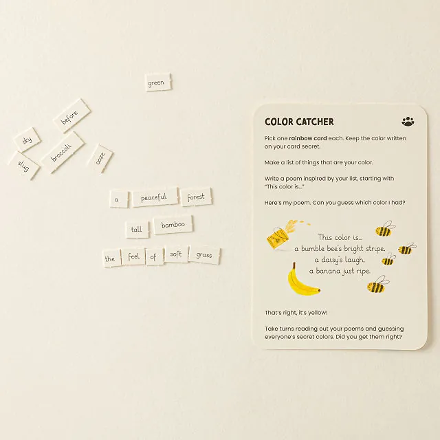 Perfect for solo play, family game nights, or classroom activities, this kit encourages experimentation with words and storytelling. With 500 word tiles, a letter spinner, 12 activity cards, and a 32-page guide, budding poets can play, create, and express themselves in multiple ways.