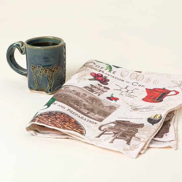 Use this towel for everyday kitchen tasks such as drying cups, wiping spills, or displaying it as a decorative accent. The durable cotton material softens with each wash while keeping the intricate coffee illustrations vibrant. Machine washable and easy to care for, it is both practical and stylish for any coffee lover’s kitchen.