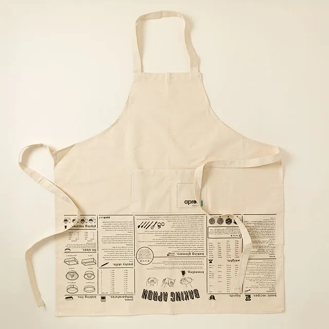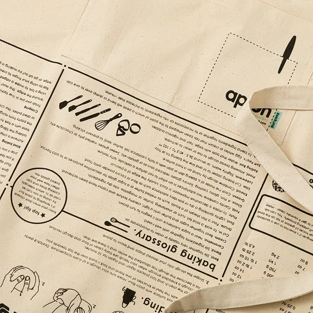 Printed upside-down for easy reading while you work, this apron provides quick reference for baking techniques, ingredient tips, and heat charts. Made from 100% unbleached cotton, it’s full-length with adjustable ties and a front pocket for utensils or tools. Durable, machine washable, and practical, it’s perfect for bakers, chefs, or anyone looking to elevate their kitchen game.