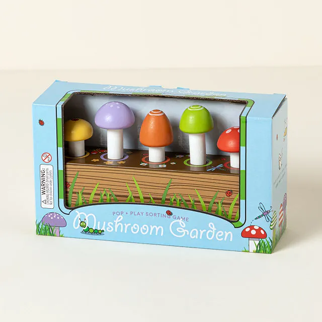 Crafted from FSC-certified wood, the Toddler Pop & Play Jumpin’ Mushroom Garden is safe, durable, and beautifully made. With five vibrantly painted mushrooms that fit into matching garden slots, children will love watching their colorful friends “jump” to life. Its fairy-tale design makes it an adorable addition to any playroom while encouraging early developmental skills through interactive play.