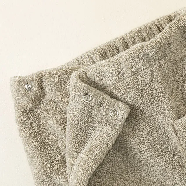 The towel features hidden snaps and an elastic band for easy adjustments, ensuring a perfect fit for most body sizes.