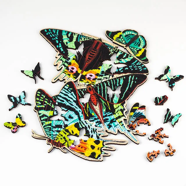 Each of the 181 maple plywood pieces is laser-cut with extraordinary precision, forming a stunning matrix pattern that’s as beautiful as it is challenging. The centerpiece — a Madagascan Sunset Moth — bursts with rainbow hues, adding a captivating touch to the finished image. With irregular edges and whimsical hidden shapes, every connection reveals new surprises and a fresh sense of wonder.