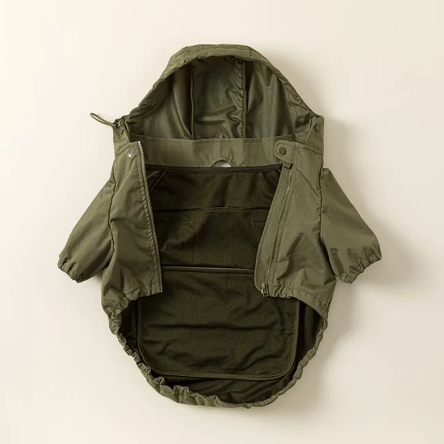 Crafted from breathable, water-resistant nylon, this jacket protects your pup from splashes and sprinkles without trapping heat or moisture. Thoughtful details like stretchy sleeve ends, an adjustable hood, and a leash-access opening ensure an easy fit and all-day comfort. And when the sky clears? Simply fold it into its built-in pouch and toss it in your bag — perfect for park days or travel.
