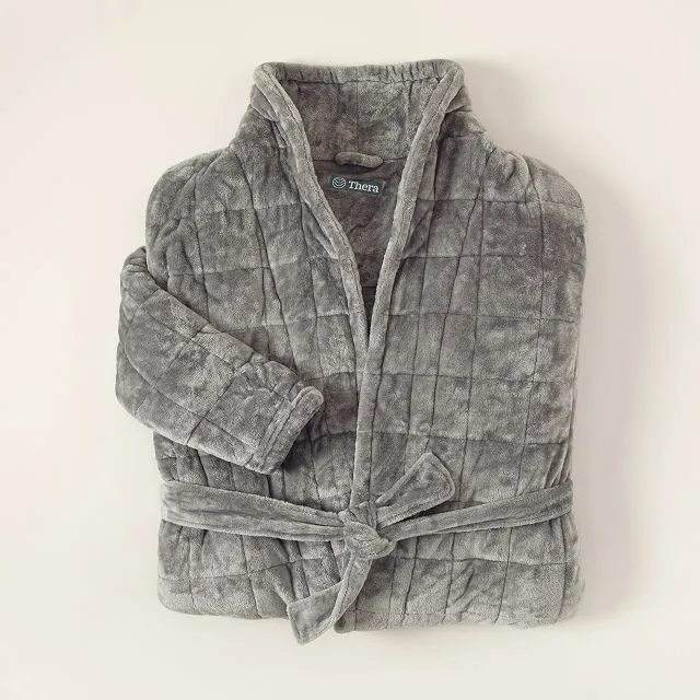 4. Will the robe help with muscle soreness? Yes, the extra weight on the shoulders and throughout the robe can help relax muscle soreness and ease joint pain, providing a soothing experience.
