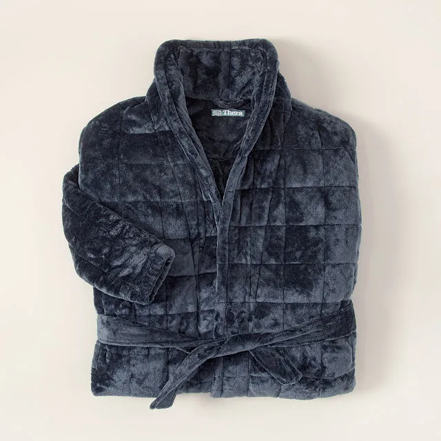 This robe brings all the stress-relieving benefits of a weighted blanket directly to your wardrobe. The extra weight in the shoulders provides deep-touch stimulation, helping to relieve muscle soreness and joint pain, while promoting relaxation and a sense of calm. The weight is evenly distributed throughout the robe, with glass beads sewn into each quilted panel.