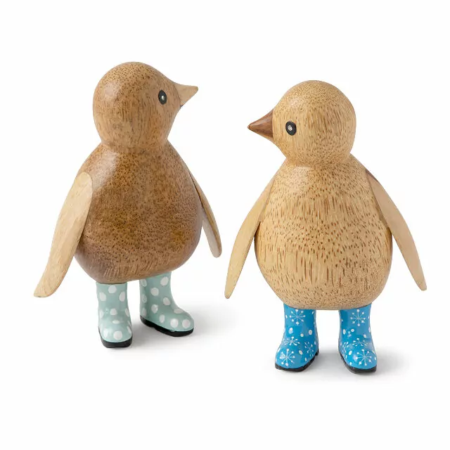 The Wellie Garden Penguins are the perfect blend of craftsmanship and charm. Each penguin is handcrafted from durable materials, making them ideal for both sunny days and rainy weather. These wooden penguins, carved from bamboo and resin, are carefully painted with intricate details, giving them a life-like appearance.