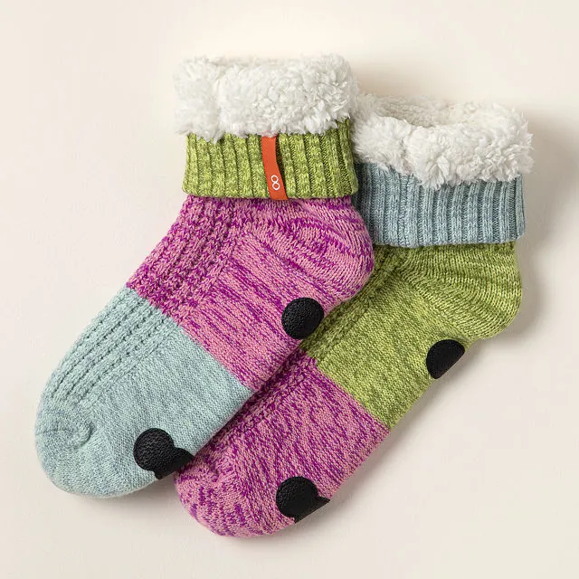- Limited-Edition Colors: Made from repurposed yarn in unique, limited-edition colors, these slipper socks stand out with every wear.